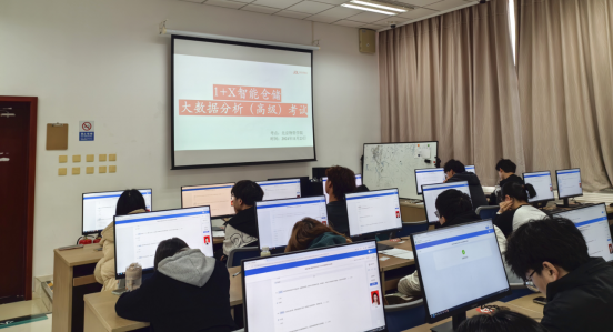 2024年11月23日上午,京东学院81名考生在经管中心机房参加教育部“1+X”智能仓储大数据分析(高级)职业技能认证考试。考试分两场进行:基础知识测试(09:00-10:30)与岗位技能测试(10:50-12:20),除2人缺考外,79名学生顺利完成考核,考试于12:20圆满结束。