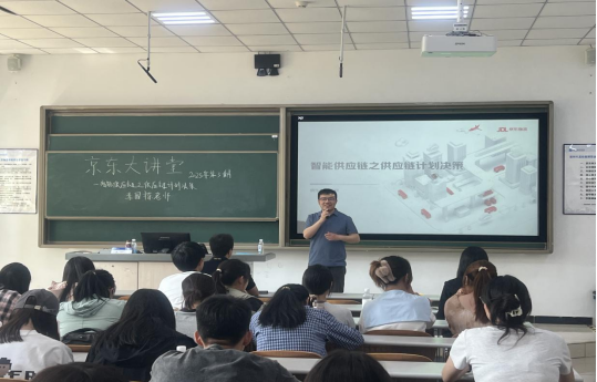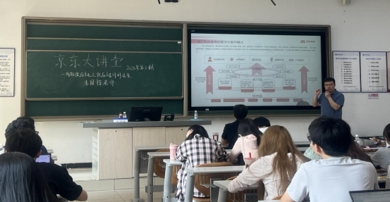 2025年5月28日下午,京东学院有幸请到京东物流物流科技事业部产品总监李国栋老师为京东学院的本科生和研究生进行主题为“智能供应链之供应链计划决策”的讲座。李老师负责智能仓储环境下,货到人AGV系统(地狼系统)的规划设计工作,熟悉供应链网络规划、仓储工艺规划的相关业务,对供应链和物流系统规划和仿真有多年研究和从业经验,现任物资学院京东学院、北京联合大学硕士生企业导师。