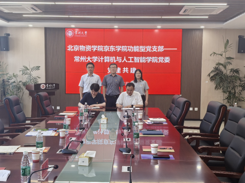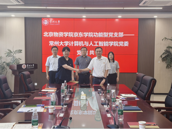 2025年7月5日上午,北京物资学院京东学院功能型党支部与常州大学计算机与人工智能学院党委在合作共促的基础上,结对为党建联建共建单位。京东学院功能型党支部书记郝庆与阿里云大数据学院党委书记王峰在常州大学阿里云数据学院签订了《北京物资学院京东学院功能型党支部与常州大学计算机与人工智能学院委员会党建共建协议书》。